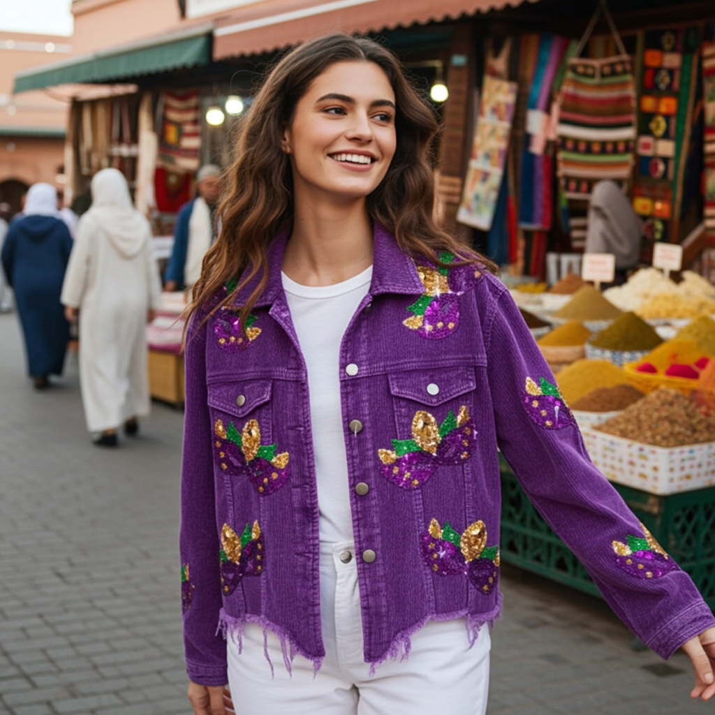 Mardi Gras Purple Corduroy Jacket Purple, Green, and Gold Mask